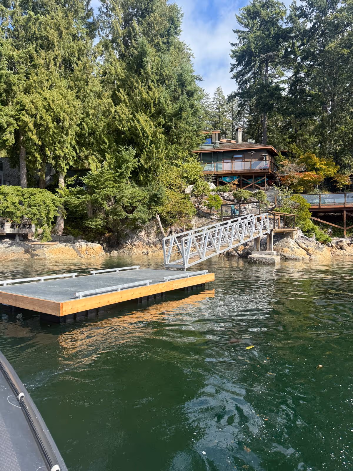 We handle the entire process — site assessment, custom design, fabrication in our Sechelt shop, and professional delivery and installation by water.